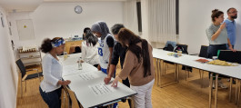 Anhand einer Übung wurden die Kriterien für eine gute Forschungsfrage herausgearbeitet und mit Beispielen unterfüttert. Bis zum nächsten Treffen sollten sich die Mitforschenden Fragen zum gewählten Thema überlegen, z.B. wie eine Fragestellung dazu aussehen könnte und welche Aspekte sie dabei am meisten interessieren würden. Anhand des Kriterienkatalogs überprüften sie dann in Kleingruppen ihre mitgebrachten Fragen, qualifizierten diese und präsentierten sie der gesamten Gruppe.